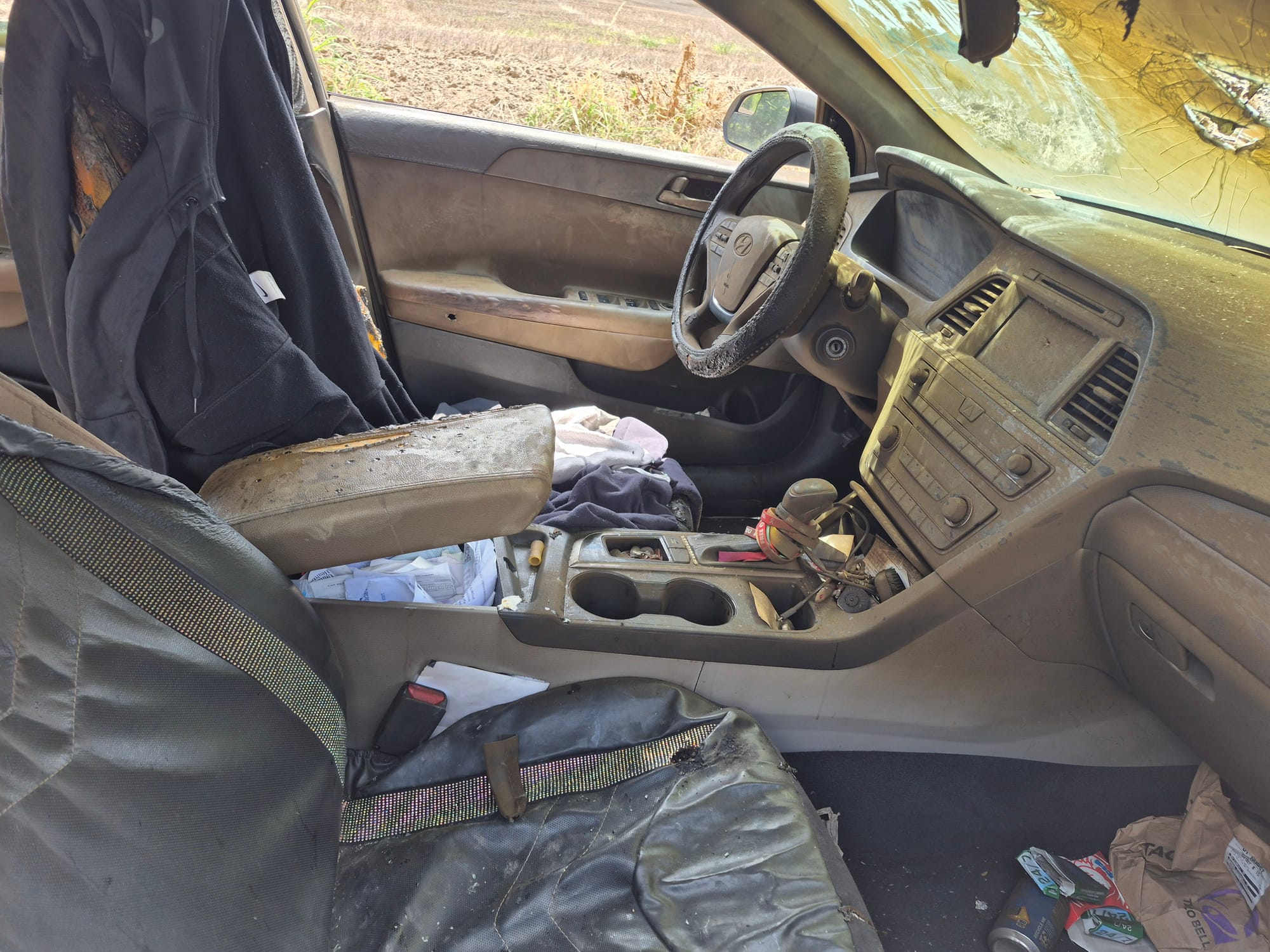 The vehicle, owned by a 28-year-old Salina woman, was discovered abandoned around 1:30 p.m. on August 4th. Responding officers found the car with its driver's door open, a damaged windshield, and burn evidence in the back seat area.