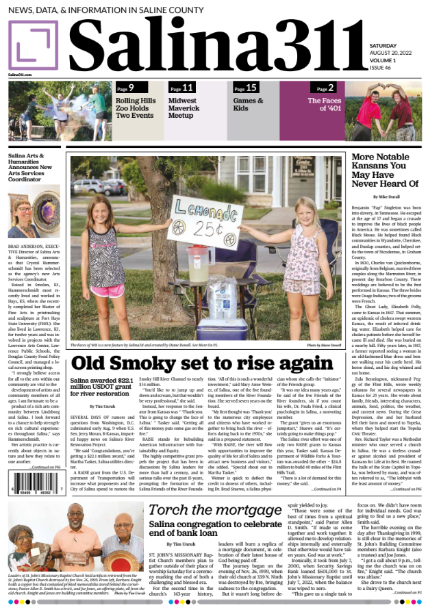 Salina311 Newspaper is a Saturday print paper available by subscription and delivered straight to subscriber's doors that live within the city limits of Salina. Subscriptions outside of Salina are delivered via USPS.