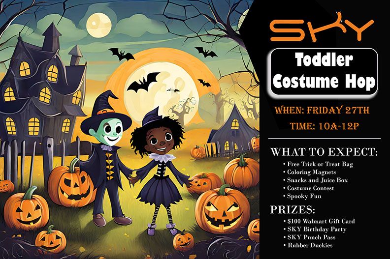 Prepare for an enchanting day of costumes, cuteness, and fun at Sky Trampoline Park's Toddler Costume Hop Extravaganza. Join them on Friday, October 27th, from 10 am to noon for an event that your little ones simply can't miss.