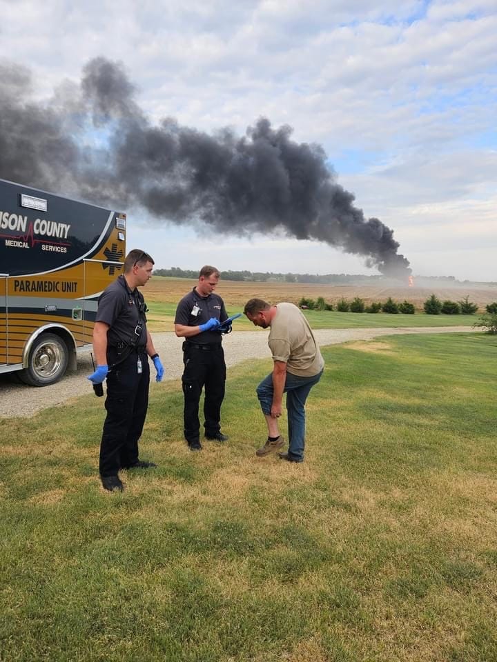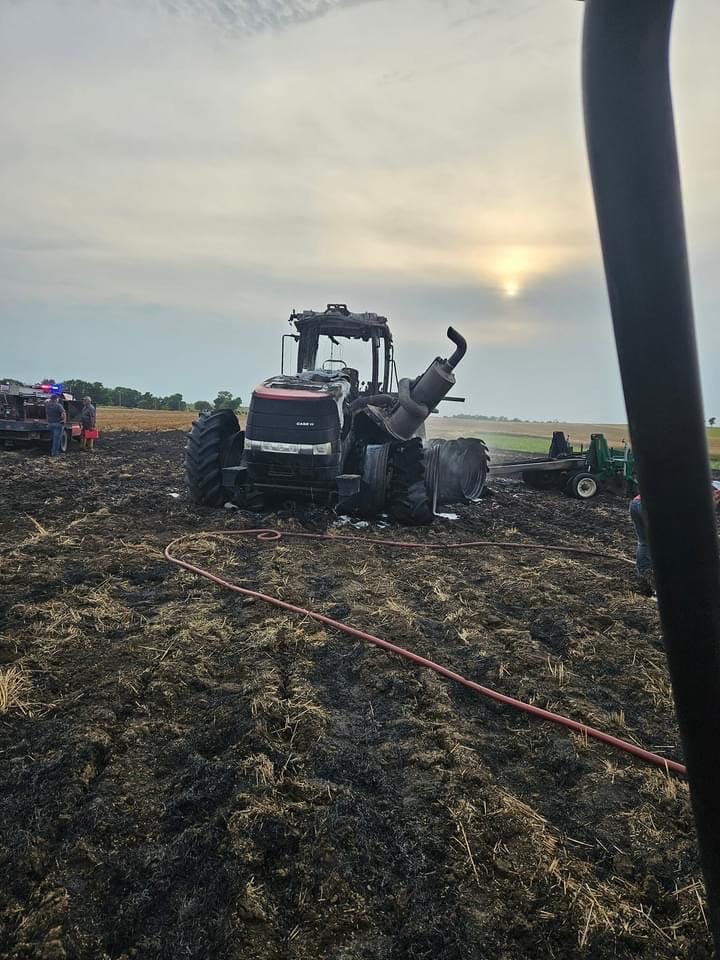 In a dramatic and fiery turn of events on Friday evening, a tractor fire incident north of Solomon on 2700 Avenue left one man with minor injuries.