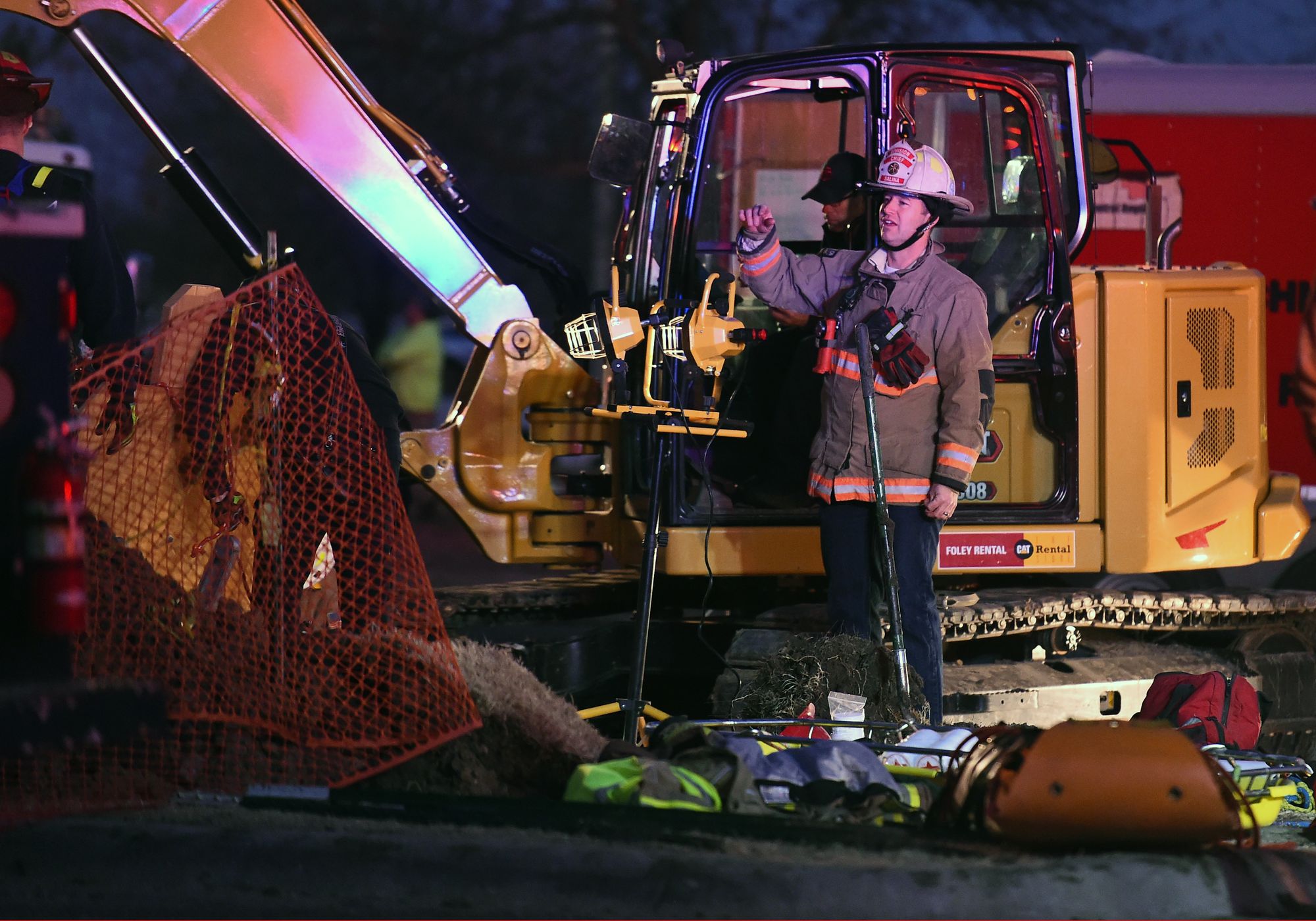 Salina Fire Chief Tony Sneidar, Jr says that at 4:45 pm, SFD and first responders were dispatched to the area of Salina South High. Private contractors were completing waterline work when a trench collapsed on two workers. Salina Fire, Salina Police Department, and the City of Salina Public Works Department all set up to rescue the workers. One worker was up to their knees, and was rescued after 20 minutes and refused treatment at the scene. The second worker was almost totally covered and was rescued after one hour and 45 minutes. This worker was alert and talking while being transported to SRHC.