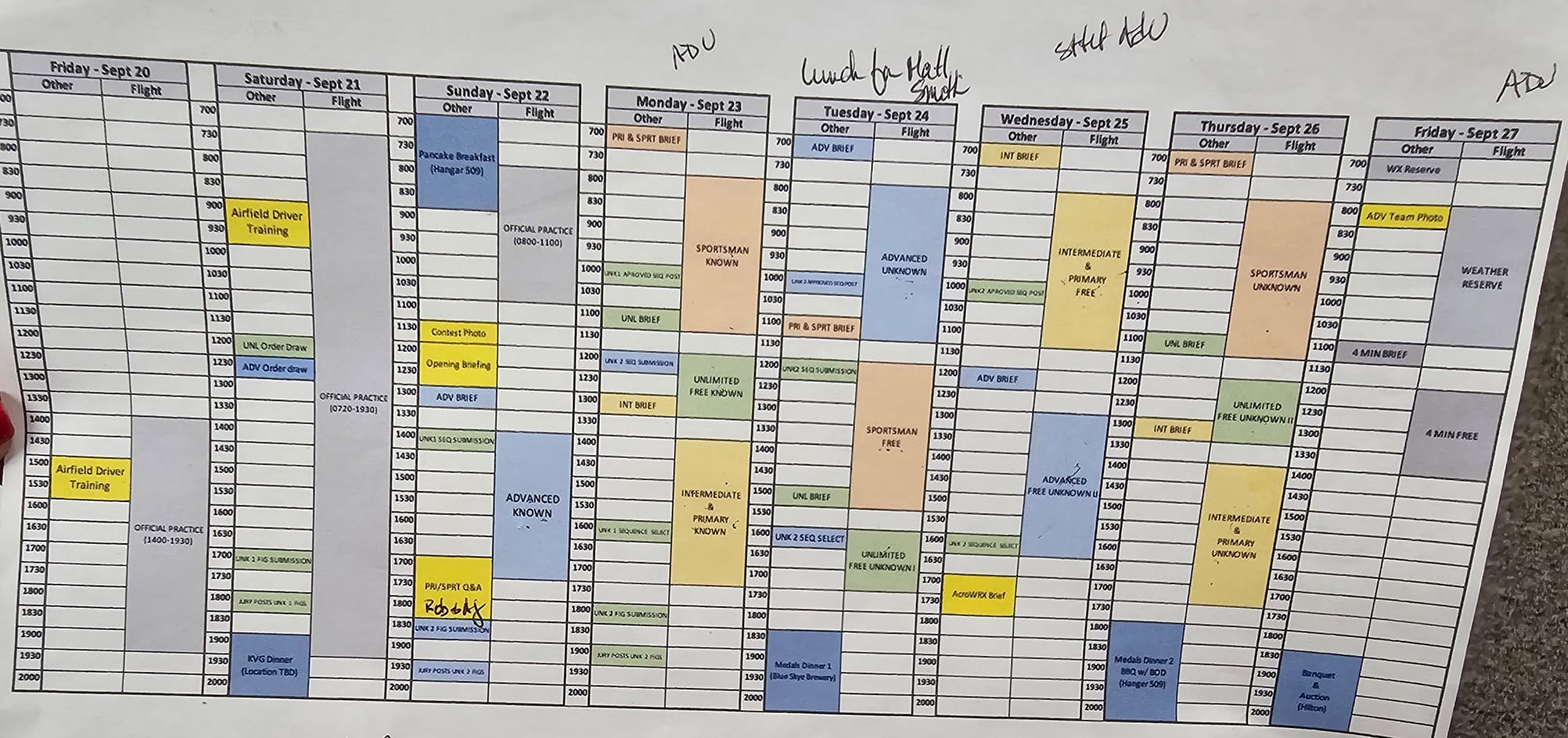 Preliminary schedule-depending on the weather.