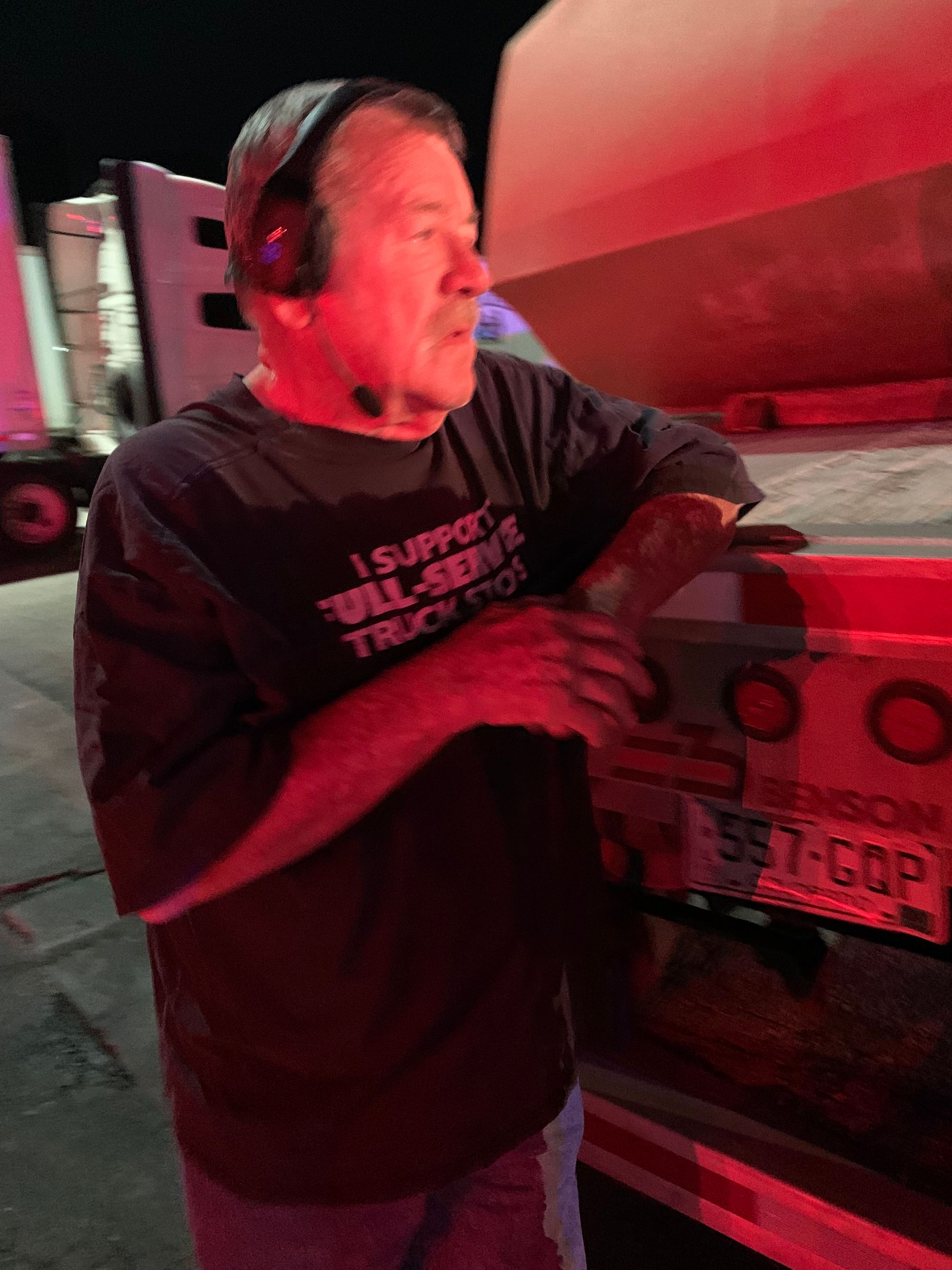 Etherton, who borrowed a phone and headset from another truck driver to call his wife and others, spent the night in a nearby hotel.